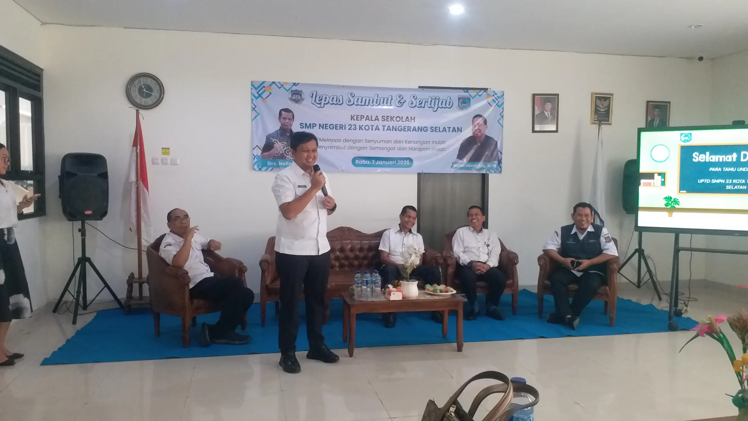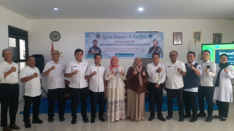 MATARAKYAT ONLINE, TANGERANG SELATAN — UPTD SMPN 23 Tangerang Selatan menggelar acara Serah Terima Jabatan (Sertijab) dan lepas sambut kepala sekolah pada Rabu (7/1/2026). Kegiatan ini menandai berakhirnya masa tugas Kepala SMPN 23 Tangsel, Nofiardi, yang resmi memasuki masa purna bakti.